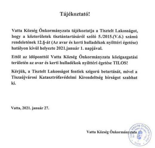 Vatta Község Önkormányzatának Képviselő-testülete