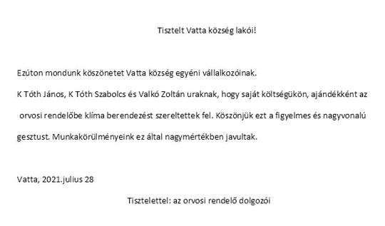 Vatta Község Képviselő testületét: