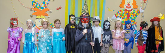 vidám mulatságon az egyéni jelmezekbe öltözött óvodások