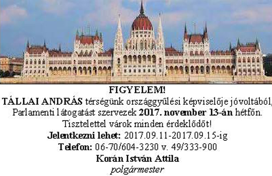 és Képviselő-testülete 2017.október 21-én 14.00 órától