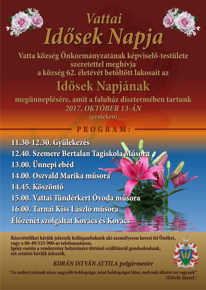 alkalmából Vatta Község Önkormányzata az