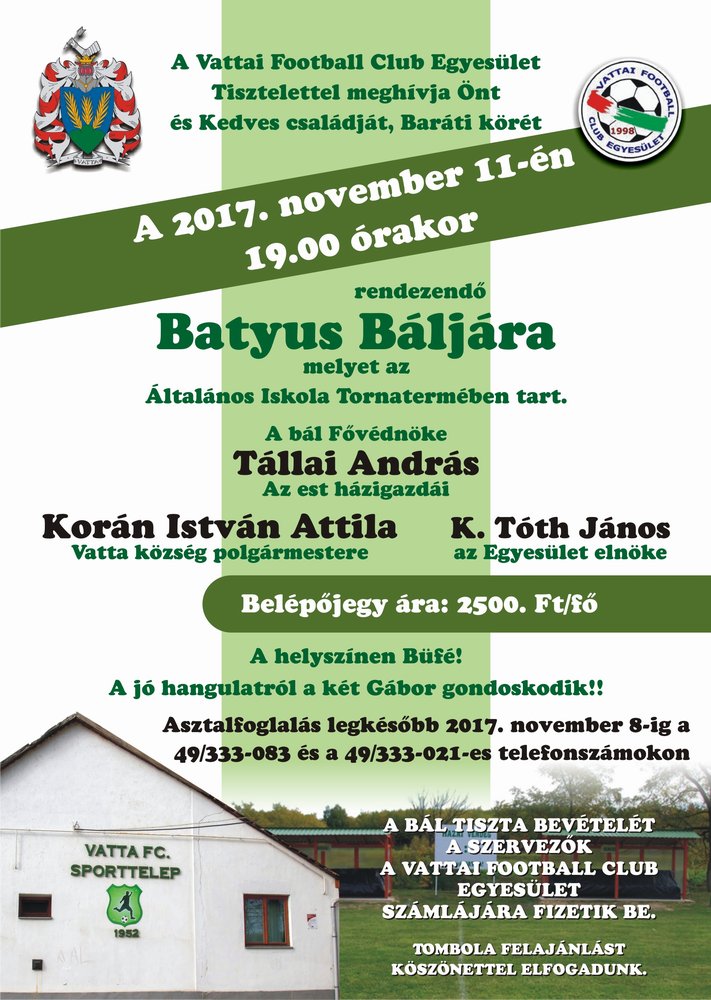 február 16-án 15 órától Vattán a faluház dísztermében