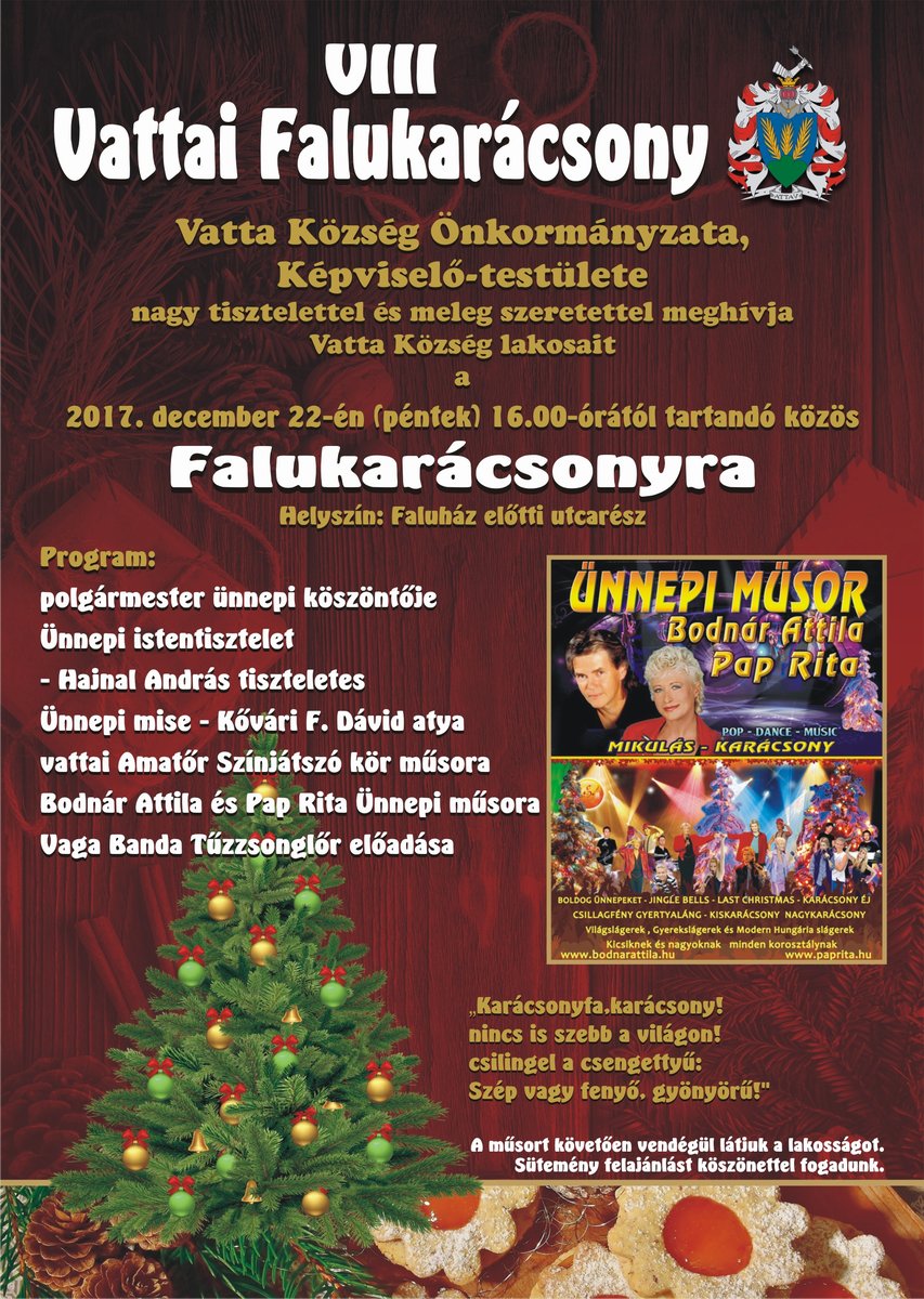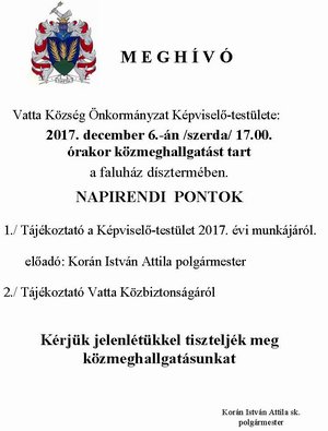 december 1-én 15.30 órától Vatta Község Önkormányzatának