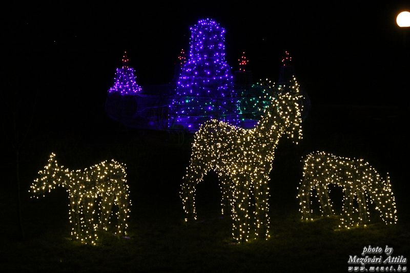 előtte lévő téren. A karácsonyi fényekben pompázó