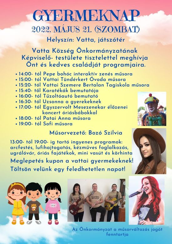 14 órától a színpadon az alábbi a gyermeknapi