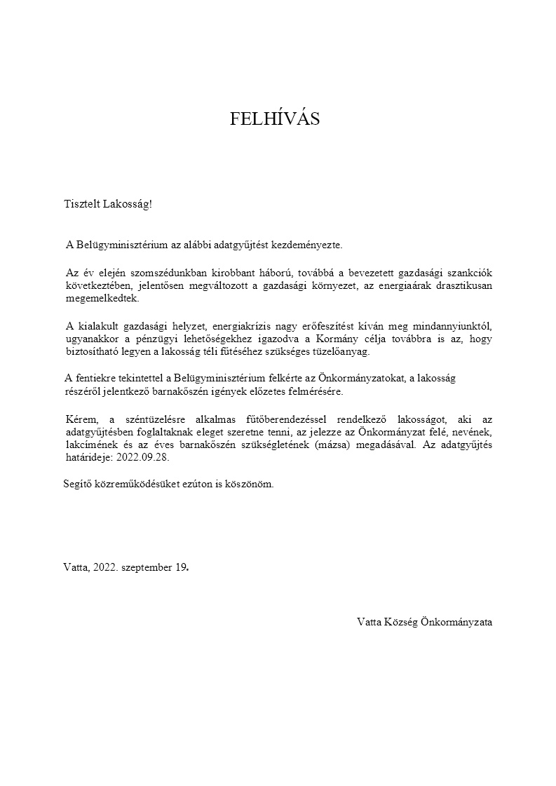 MEGHÍVÓ Vatta Község Képviselő Testületét 2022.